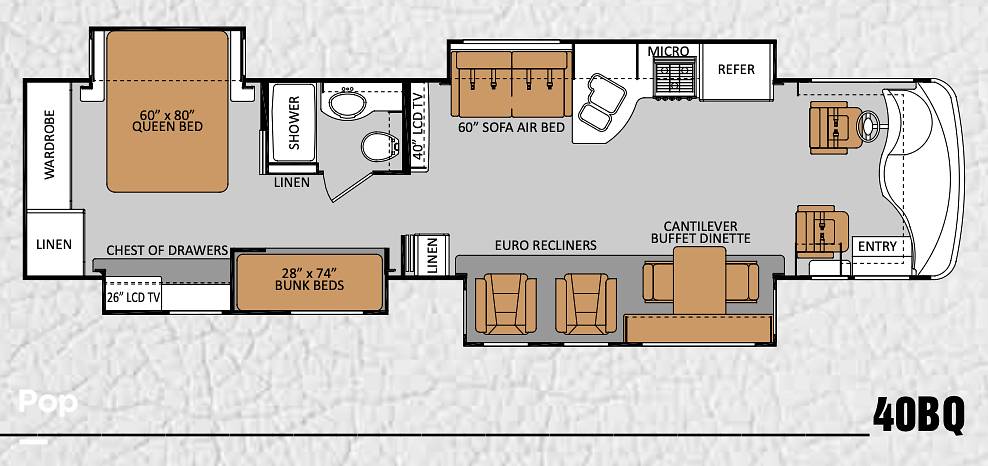 With a fuel capacity of 379 liters, this RV is built for long journeys, allowing you to travel further with fewer stops. Whether you're cruising along scenic highways or parked at a serene campsite, the Thor Motor Coach Astoria 40BQ delivers a smooth and reliable ride. Don't miss out on the opportunity to own this fantastic RV and create unforgettable memories on the road. Adventure awaits, and the Astoria is ready to take you there!