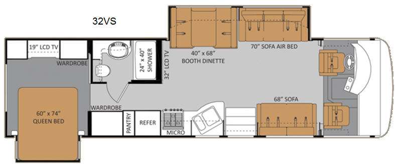 The Challenger 32VS features two spacious slide-outs, enhancing the living area to provide ample room for relaxation and entertainment. With a length of 28 feet, this motorhome offers a perfect balance of maneuverability and space. It comfortably accommodates up to six people, making it an excellent option for family trips or group outings. The thoughtfully designed interior includes a fully equipped kitchen, a cozy dining area, and a comfortable sleeping arrangement, ensuring that all your needs are met while on the road.