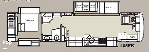 Measuring 35 feet in length, the Sportscoach 405FK provides ample space for both living and storage. Inside, you'll find a well-appointed kitchen equipped with modern appliances, allowing you to prepare meals with ease. The living area is designed for relaxation, featuring comfortable seating and a flat-screen TV for entertainment on the go. The RV also includes a full bathroom with a shower, ensuring you have all the comforts of home while traveling.