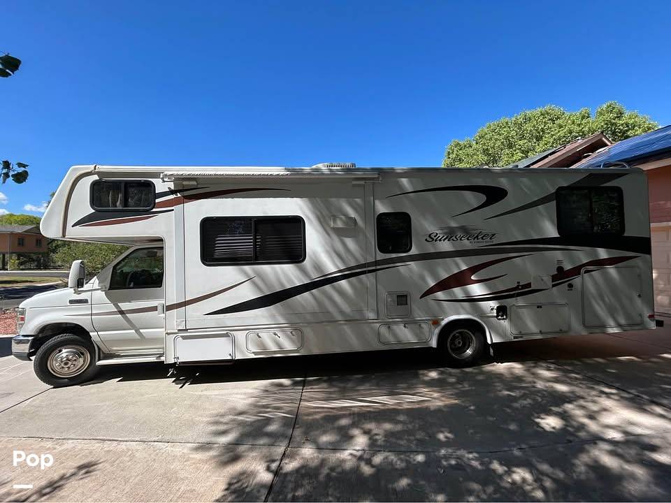 Introducing the 2013 Forest River Sunseeker 3120DS, a Class C motorhome that combines comfort, functionality, and style. This meticulously maintained RV is the perfect choice for families or groups seeking adventure without compromising on the comforts of home. With a length of 27 feet, the Sunseeker offers ample space and a thoughtfully designed interior that can comfortably accommodate up to nine sleepers, ensuring everyone has a cozy place to rest after a day of exploration.