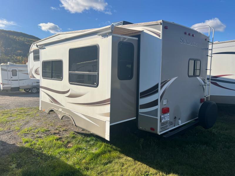 Step inside to discover a beautifully appointed interior featuring high-quality finishes and modern amenities. The Sundance 265RK boasts a fully equipped kitchen with a refrigerator, stove, and microwave, allowing you to prepare meals with ease. The cozy living area is complemented by plush seating, providing a perfect spot to relax after a day of exploration. The RV also includes a well-proportioned bedroom with a comfortable bed, ensuring restful nights wherever your travels take you. The bathroom is equipped with a shower, sink, and toilet, offering all the conveniences of home.