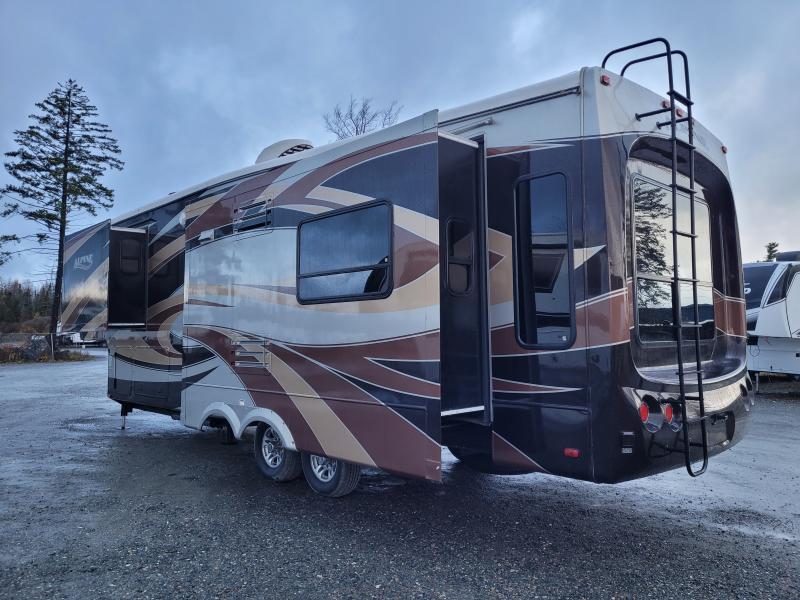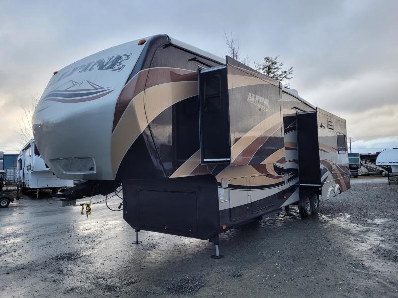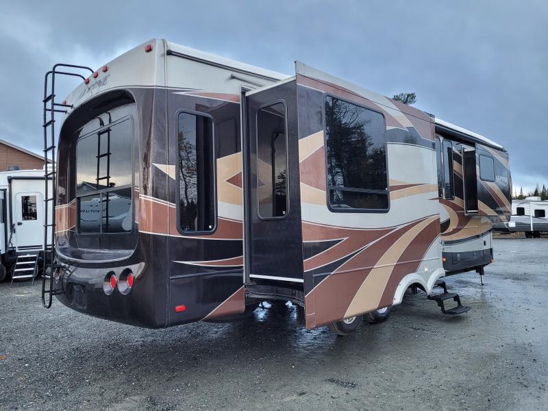 Introducing the 2013 Keystone Alpine 3250RL Fifth Wheel, a distinguished choice for those seeking luxury and comfort on the road. This meticulously crafted RV spans approximately 33 feet in length, offering an expansive living space that ensures a home-like experience wherever your travels may take you. The Alpine series is renowned for its superior construction and elegant design, and this model is no exception, providing a perfect blend of functionality and style.