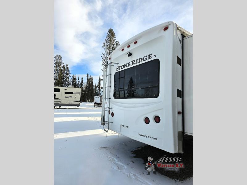 Looking for the perfect home on wheels? Check out this 2013 KZ StoneRidge 38FL Fifth Wheel! With its spacious design and cozy amenities, this RV is ready to take your adventures to the next level. Measuring 38 feet in length, it offers plenty of room for the whole family or a group of friends. Weighing in at approximately 5,389 kilograms, it's a sturdy yet manageable travel companion.