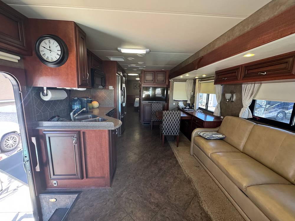 Beyond its luxurious interior, this RV is built with practicality in mind. The Canyon Star 3810 boasts a robust construction and reliable performance, ensuring peace of mind on every journey. Its thoughtful design includes ample storage compartments, allowing you to bring along all the essentials for extended trips. Whether you're embarking on a cross-country adventure or a weekend getaway, the 2013 Newmar Canyon Star 3810 Class A motorhome promises a travel experience that is both memorable and comfortable. Embrace the road with confidence and style in this exceptional RV.