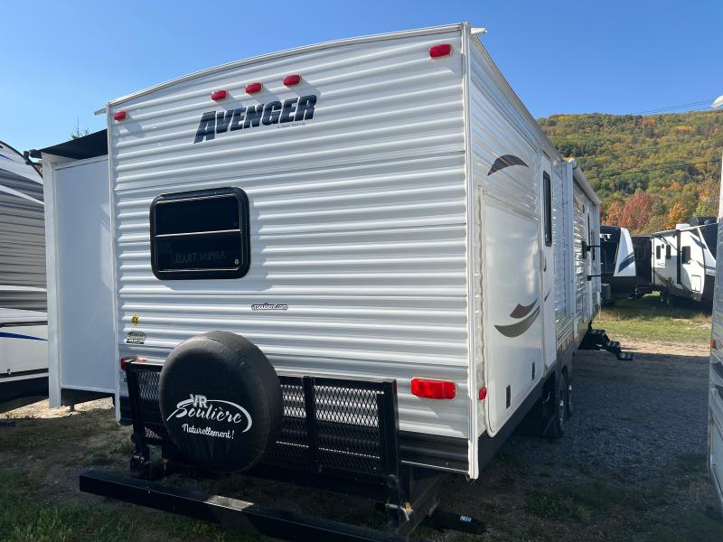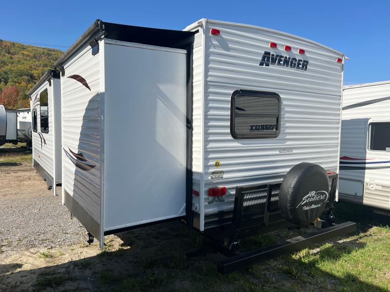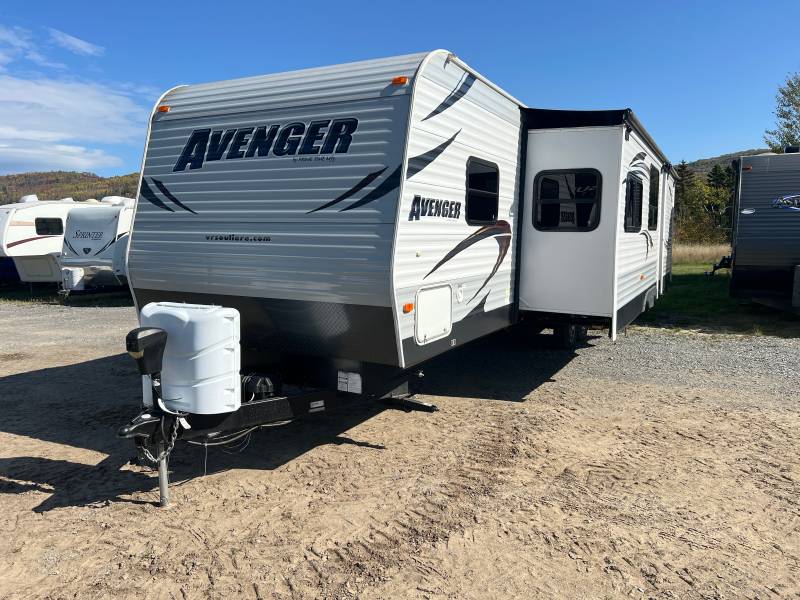 Step inside to find a thoughtfully designed interior featuring a fully equipped kitchen with modern appliances, including a refrigerator, microwave, and stove, all set to make meal preparation a breeze. The cozy living area is perfect for unwinding after a day of adventure, with comfortable seating and a flat-screen TV for your entertainment needs. The Avenger 32BHS also boasts a private master bedroom with a queen-sized bed, ensuring a restful night's sleep, while the bunkhouse offers additional sleeping space, making it perfect for families with children.