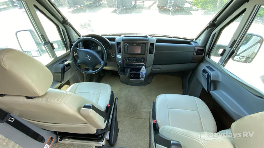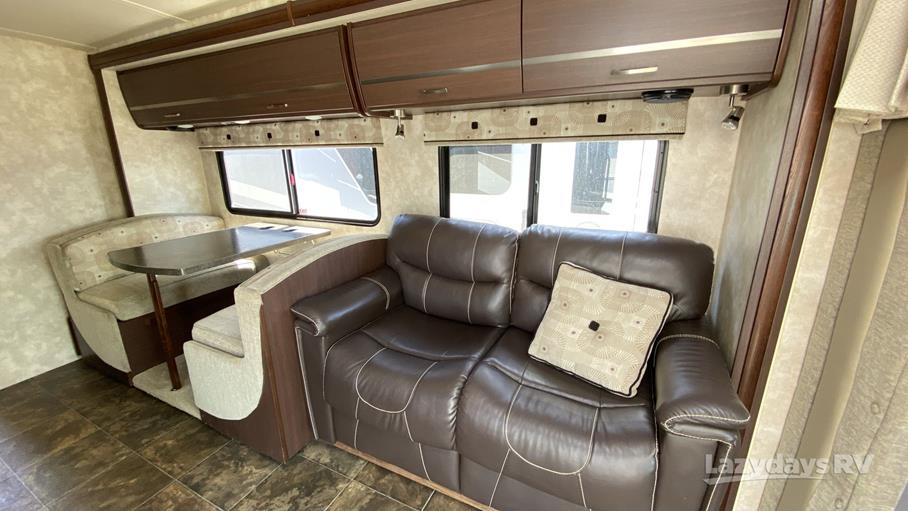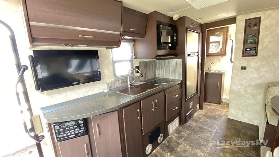 The interior of the Winnebago View 24M is thoughtfully designed to accommodate up to five occupants comfortably. The inclusion of a single slide-out significantly enhances the living space, providing ample room for relaxation and entertainment. The well-appointed sleeping arrangements ensure a restful night's sleep, featuring a cozy double bed, a convertible dinette, and an overhead bunk. The kitchen is equipped with modern amenities, including a refrigerator, microwave, and stove, allowing for convenient meal preparation on the go.