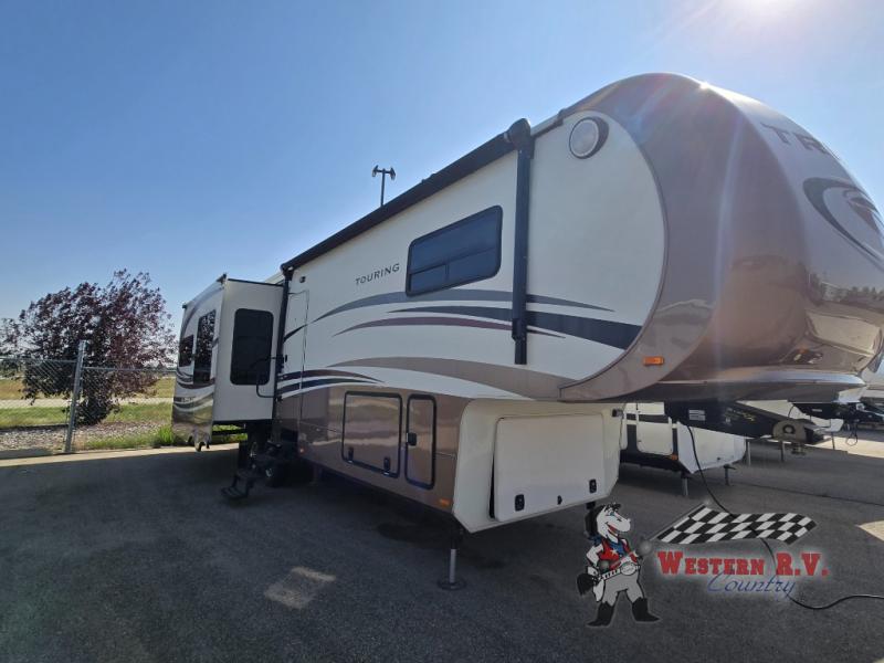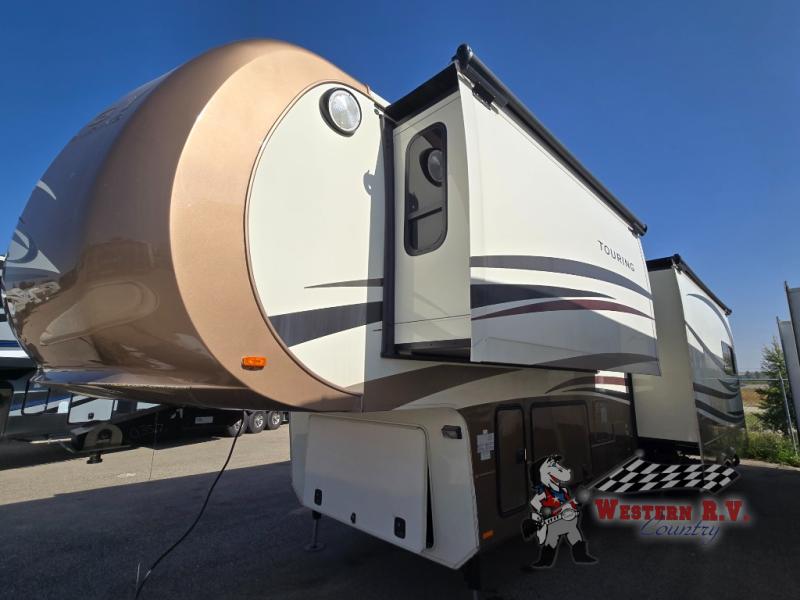 Introducing the 2014 Dynamax Trilogy Touring 36RE Fifth Wheel, a luxurious and spacious mobile retreat designed for the discerning traveler. This exceptional RV is engineered to provide the ultimate in comfort and convenience, making it an ideal choice for both short getaways and extended adventures. With its impressive three slide-outs, this model offers an expansive living area that ensures ample space for relaxation and entertainment.
