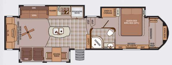 The Trilogy Touring 36RE is meticulously crafted to accommodate up to four occupants, making it perfect for families or couples seeking a home away from home. The interior is thoughtfully designed with high-quality finishes and modern amenities, ensuring a comfortable and enjoyable experience. The RV's robust construction is evident in its substantial weight of 6,277 kilograms, providing stability and durability on the road. Measuring 36 feet in length, this fifth wheel offers a generous layout that maximizes both functionality and style.
