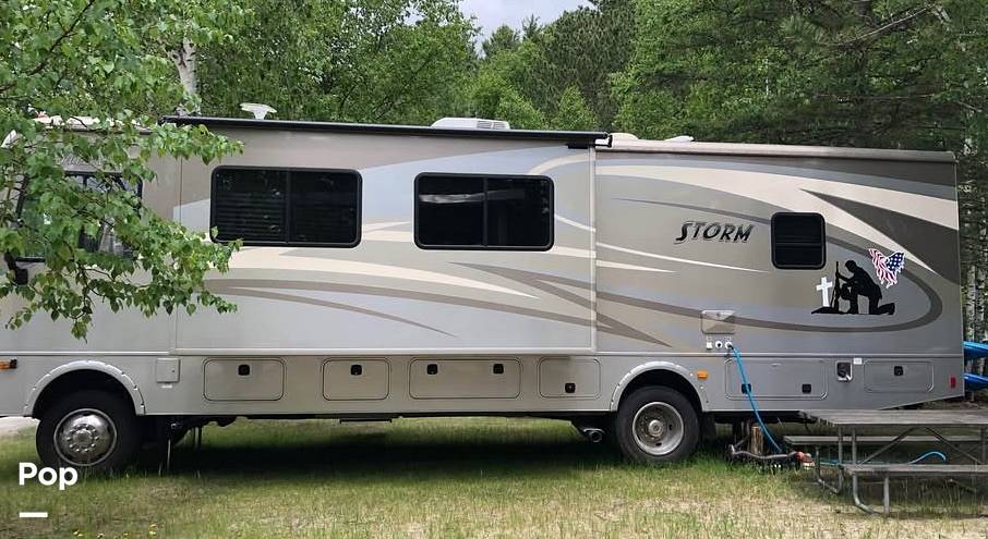 The 2014 Fleetwood Storm 32V is not just about interior comfort; it also boasts impressive features for convenience and safety. With ample storage compartments, you can bring along all your essentials and more. The motorhome is built with quality materials and craftsmanship, ensuring durability and longevity. Whether you're planning a weekend getaway or an extended road trip, this RV is ready to provide a reliable and enjoyable travel experience. Don't miss the opportunity to own this exceptional motorhome that combines practicality with the freedom to explore the great outdoors.