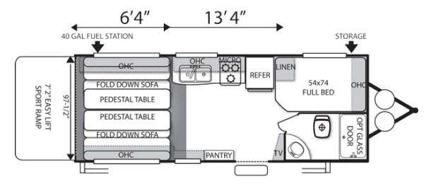 Weighing approximately 2,484 kilograms, the Shockwave T18SSMX is engineered for easy towing without compromising on durability or performance. The toy hauler design provides ample space for your recreational gear, ensuring that your bikes, ATVs, or other equipment can be transported with ease. Inside, you'll find a well-appointed living area that maximizes space and comfort, featuring modern amenities that cater to your needs while on the move.