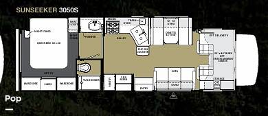 Measuring approximately 25 feet in length, the Sunseeker 3050S offers a well-designed living space that maximizes every square meter. The interior features a fully equipped kitchen, complete with modern appliances, allowing you to prepare meals with ease. The dining area is both practical and inviting, providing a perfect spot for family meals or game nights. The sleeping arrangements are versatile, with a master bedroom, convertible dinette, sofa bed, and overhead bunk, ensuring a restful night's sleep for all passengers.