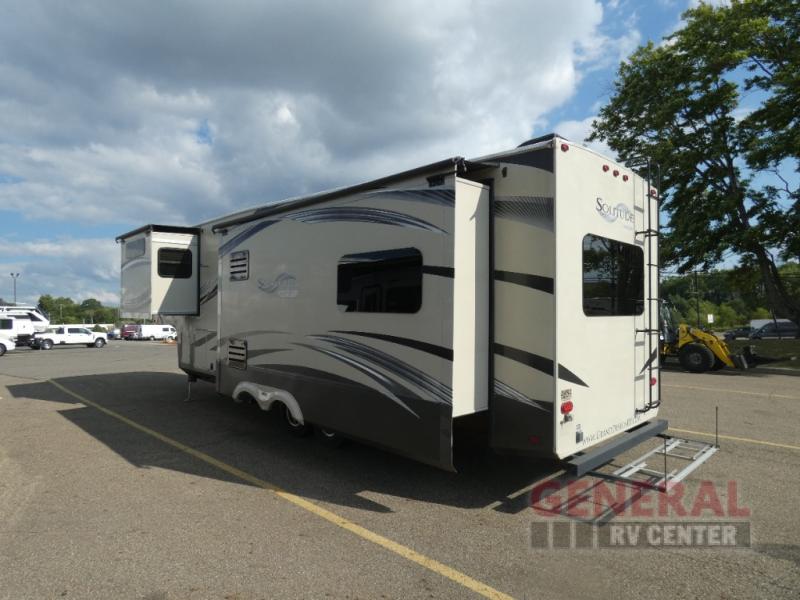 Discover the perfect blend of comfort and adventure with this 2014 Grand Design Solitude 305RE Fifth Wheel. This well-maintained RV is designed for those who crave the open road without sacrificing the comforts of home. Measuring 29 feet in length, this spacious fifth wheel offers ample room for relaxation and entertainment, making it an ideal choice for both weekend getaways and extended trips.