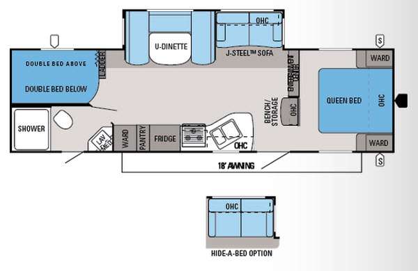 This beauty features a single slide-out that expands your living space, making it roomy enough to comfortably sleep up to 8 people. Whether you're planning a family getaway or a trip with friends, there's plenty of room for everyone to relax and unwind. The trailer stretches out to a generous 27 feet in length, giving you ample space to move around and enjoy your time indoors. Plus, with a weight of just 2,901 kilograms, it's easy to tow and maneuver, making your travels hassle-free.