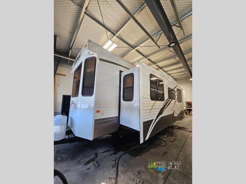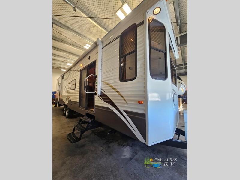 Discover the perfect getaway with the 2014 Keystone RV Retreat 39 FDEN Park Model, located in the serene setting of Hampton, NB. This spacious RV is designed for comfort and convenience, offering a luxurious home-away-from-home experience. With two expansive slide-outs, this model provides ample living space, ensuring you and your guests can relax and enjoy every moment. Measuring an impressive 39 feet in length, this RV is perfect for those who appreciate both style and functionality.