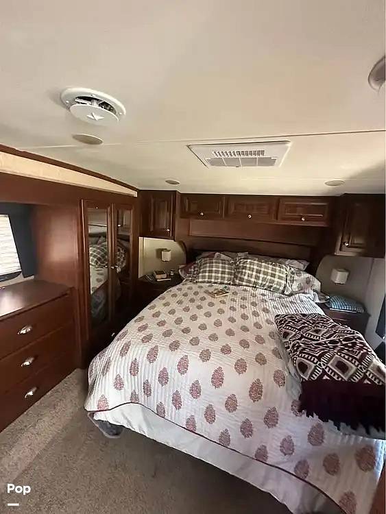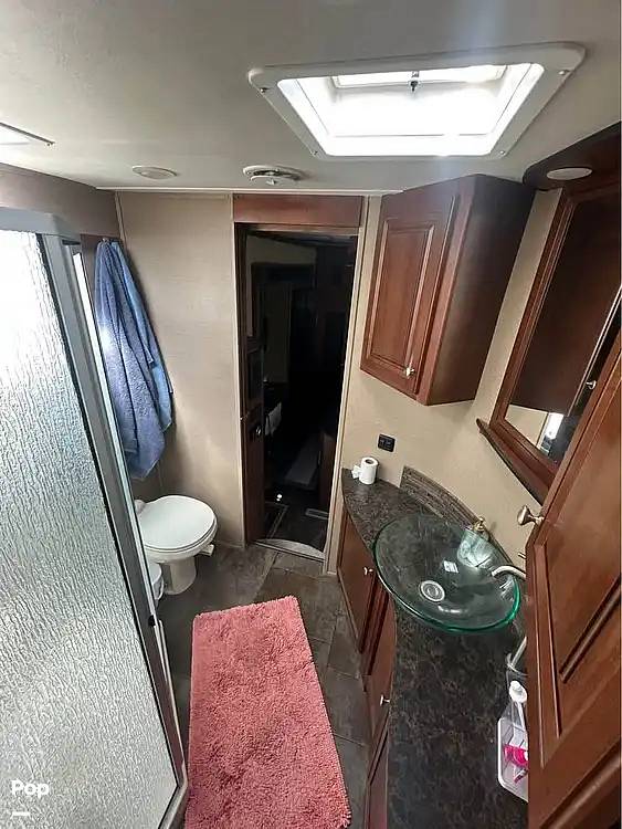The sleeping arrangements are thoughtfully designed to maximize comfort. The master bedroom offers a queen-sized bed, while the additional sleeping areas include bunk beds and convertible sofas, ensuring everyone has a restful night's sleep. The bathroom is equipped with a shower, sink, and toilet, providing all the conveniences of home. With its robust construction and stylish design, the 2014 Keystone Voltage 3950 Fifth Wheel is ready to take you on your next adventure in comfort and style. Don't miss the opportunity to own this exceptional RV and create unforgettable memories on the road.