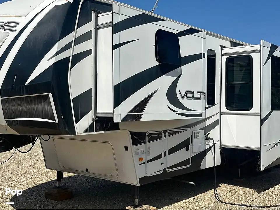 Discover the ultimate adventure companion with the 2014 Keystone Voltage 3950 Fifth Wheel. This spacious and versatile RV is designed to accommodate up to 10 people comfortably, making it perfect for family vacations or group getaways. With a length of 33 feet, this Fifth Wheel offers ample space for everyone to relax and enjoy the journey.