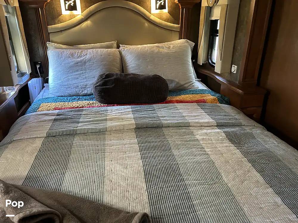 Inside, you'll find all the comforts of home. The living area is equipped with cozy seating and a flat-screen TV, making it a great spot for movie nights or catching up on your favorite shows. The kitchen is fully equipped with a refrigerator, stove, and microwave, so you can whip up delicious meals on the go. Plus, there's ample storage throughout the RV, so you can bring along all your essentials without feeling cramped.