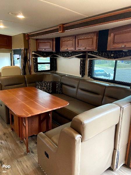 Inside, the Winnebago Sightseer 35G is thoughtfully designed to accommodate up to five guests, making it an ideal choice for family vacations or road trips with friends. The interior boasts a well-appointed living area, complete with plush seating and a fully equipped kitchen, featuring modern appliances and ample storage. The sleeping arrangements are equally impressive, offering a restful retreat with a master bedroom and additional sleeping spaces that ensure everyone enjoys a good night's sleep.