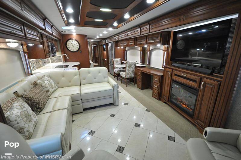 Step inside, and you'll find a spacious and cozy interior that feels just like home. The living area is perfect for relaxing after a day of exploring, with plush seating and a flat-screen TV for entertainment. The kitchen is fully equipped with modern appliances, including a refrigerator, stove, and microwave, so you can whip up your favorite meals on the go. Plus, there's plenty of storage space for all your essentials.