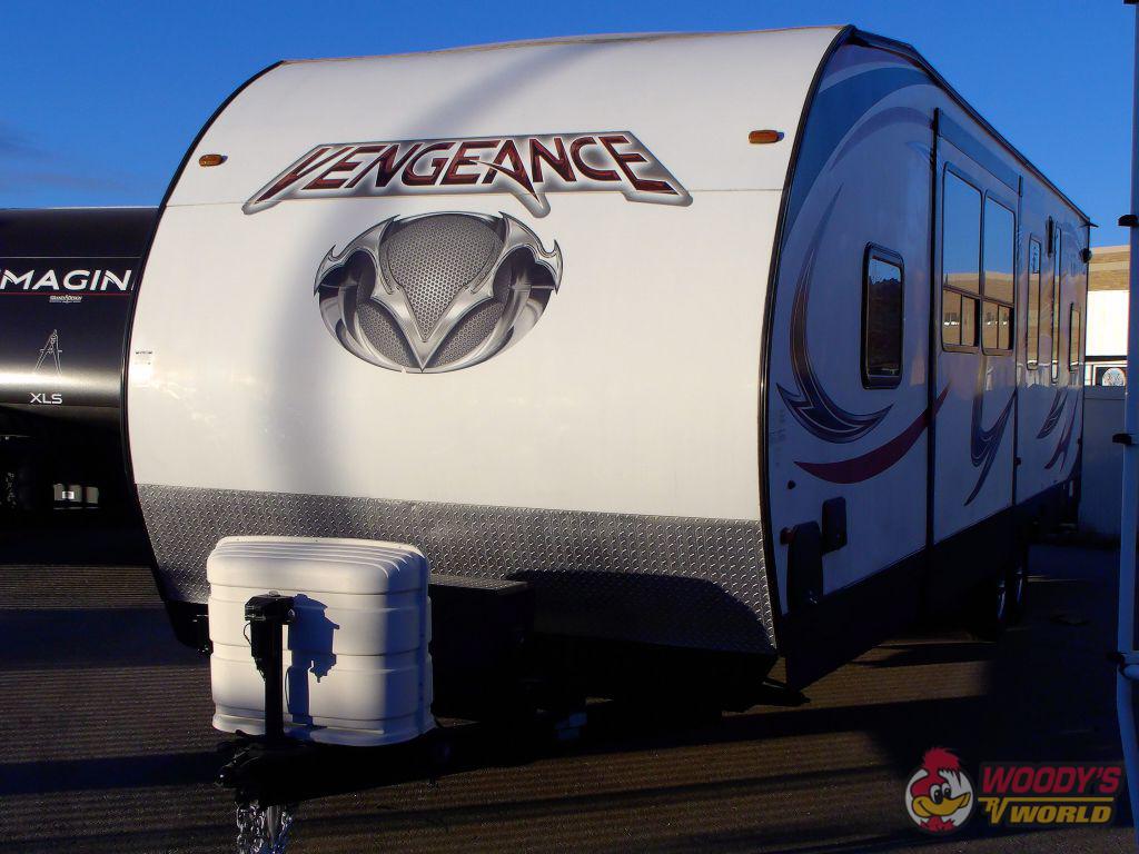 This toy hauler is engineered for those who love the outdoors, featuring a robust garage area with a loading capacity of approximately 1,360 kilograms. The garage is equipped with tie-downs and a ramp door, making it easy to load and secure your ATVs, motorcycles, or other recreational gear. Additional features include a fuel station with a capacity of 68 liters, ensuring your toys are always ready for action. With its durable construction and thoughtful amenities, the 2015 Forest River Vengeance 300V Toy Hauler is the perfect companion for your next adventure. Don't miss the opportunity to own this remarkable RV that combines luxury and practicality in one outstanding package.