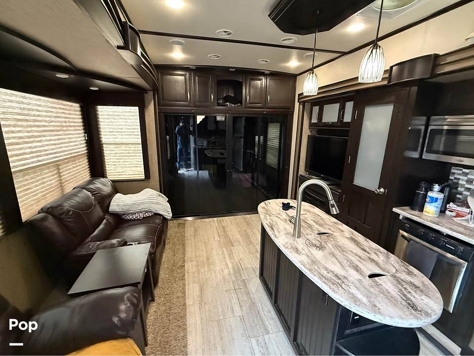 Introducing the 2015 Grand Design Momentum 380TH Fifth Wheel, a luxurious and spacious mobile retreat designed for those who seek both adventure and comfort. This exceptional RV offers a perfect blend of style, functionality, and durability, making it an ideal choice for families or groups who wish to explore the open road without sacrificing the comforts of home. With a length of 35 feet, this fifth wheel provides ample space for relaxation and entertainment, ensuring a memorable travel experience.