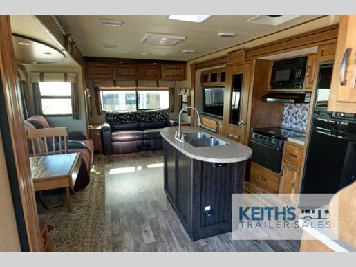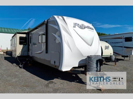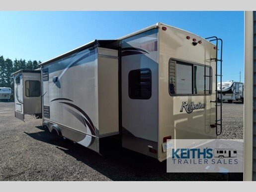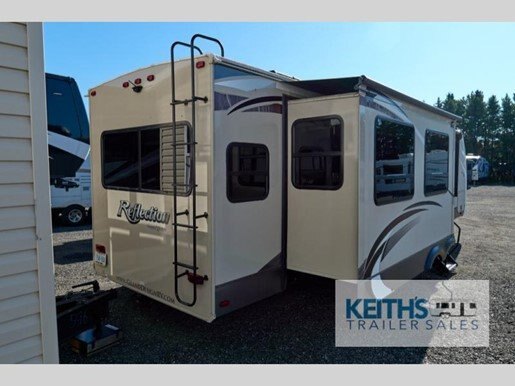 Step inside to discover a thoughtfully designed interior that boasts a harmonious blend of style and functionality. The Reflection 313RLTS features a well-appointed living area, complete with plush seating and a state-of-the-art entertainment system, perfect for unwinding after a day of exploration. The kitchen is equipped with modern appliances, including a large refrigerator, a three-burner stove, and a microwave, all designed to make meal preparation a breeze. The dining area comfortably accommodates family and friends, fostering memorable gatherings on the road.