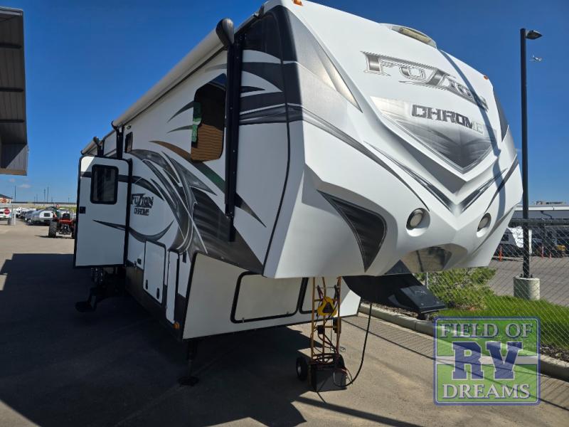 Discover the perfect blend of comfort and adventure with the 2015 Keystone RV Fuzion 390 Chrome Fifth Wheel. This impressive RV is designed to elevate your travel experience, offering ample space and luxurious amenities for the whole family. With three slide-outs, this model expands to provide a roomy interior that can comfortably sleep up to eight people, making it ideal for family trips or group outings.