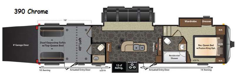Weighing approximately 6,894 kilograms, the Fuzion 390 Chrome is built for stability and ease of towing. Its robust construction ensures a smooth ride, while the thoughtfully designed layout maximizes living space and functionality. Inside, you'll find a well-appointed kitchen, a cozy living area, and a spacious bathroom, all crafted with high-quality materials and modern finishes. The sleeping arrangements include a master bedroom with a queen-sized bed, convertible sofas, and additional sleeping spaces, ensuring everyone has a comfortable place to rest.