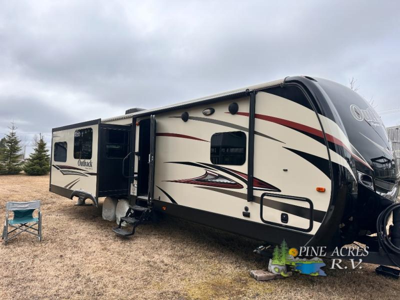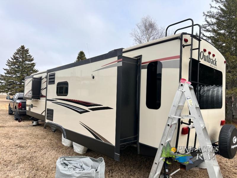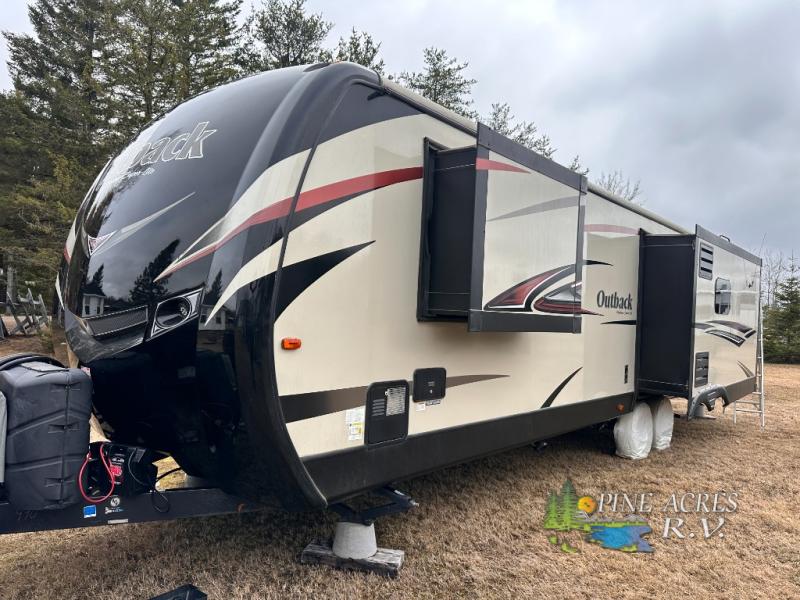 Introducing the 2015 Keystone RV Outback 316RL, a meticulously designed travel trailer that combines comfort, space, and functionality for the discerning traveler. This model features three slide-outs, significantly enhancing the living space and providing a roomy, home-like atmosphere. With a length of 29 feet, this travel trailer offers ample room for family and friends, making it an ideal choice for both short getaways and extended adventures.