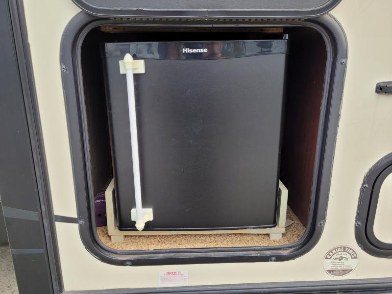 Step inside to find a thoughtfully designed interior that maximizes every square meter. The spacious living area features a cozy dinette and a plush sofa, perfect for relaxing after a day of adventure. The fully equipped kitchen boasts modern appliances, including a refrigerator, microwave, and a three-burner stove, ensuring you can whip up your favorite meals with ease. The private master bedroom offers a comfortable queen-sized bed, while the rear bathroom provides a large shower and plenty of storage space, ensuring convenience and privacy.