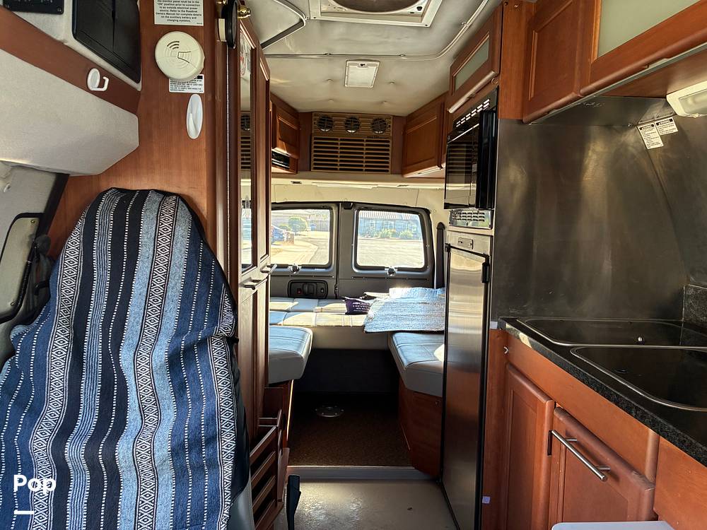 Inside, the Roadtrek Popular 210 is thoughtfully designed to accommodate up to three people comfortably. The interior layout maximizes space and utility, featuring a well-appointed sleeping area that ensures restful nights on the road. The RV is equipped with modern amenities, including a fully functional kitchenette, complete with a refrigerator, microwave, and stove, allowing you to prepare meals with ease. The bathroom facilities are compact yet efficient, ensuring convenience without compromising on comfort.