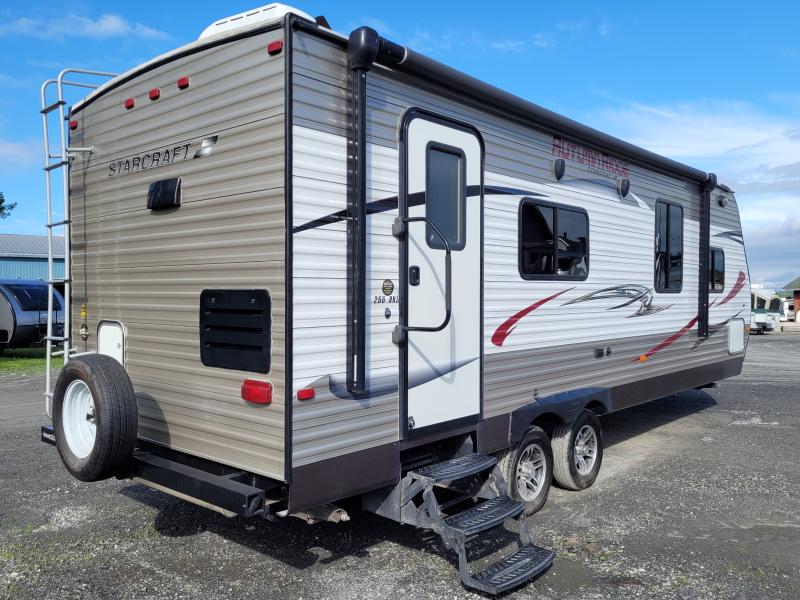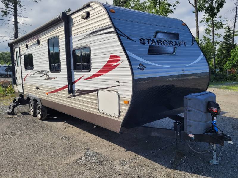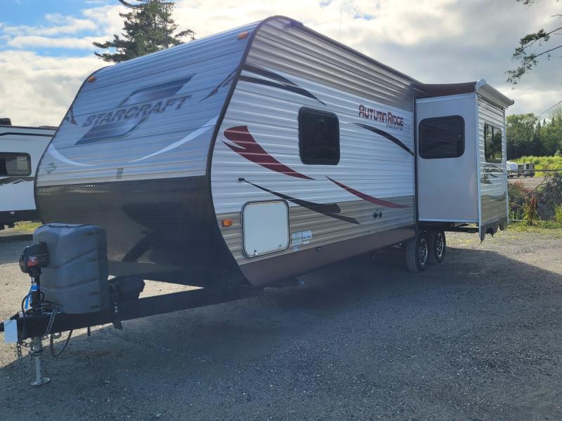 Introducing the 2015 Starcraft Autumn Ridge 266RK Travel Trailer, a remarkable blend of comfort, style, and functionality, designed to elevate your travel experiences. With a length of 25 feet, this travel trailer offers ample space for both relaxation and adventure, making it an ideal choice for families and travel enthusiasts seeking a reliable and luxurious mobile home.