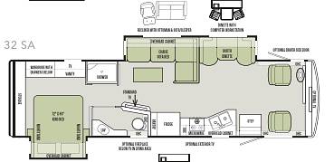 This RV is built for the long haul, boasting a generous fuel capacity of 303 liters, ensuring you can travel further without frequent stops. At 28 feet in length, the Allegro 32SA provides ample room for everyone to stretch out and relax, while still being manageable on the road. Inside, you'll find a well-appointed living area with plush seating, a fully-equipped kitchen, and a cozy dining space. The sleeping arrangements are versatile, with a master bedroom, convertible sofas, and additional sleeping options to accommodate all your guests.
