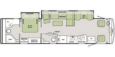Step inside and be greeted by a warm and inviting interior that feels just like home. The spacious living area features plush seating, perfect for relaxing after a day of adventure. The well-equipped kitchen comes with everything you need to whip up delicious meals on the go, including a refrigerator, stove, and microwave. The dining area is perfect for enjoying meals together or planning your next destination. With ample storage throughout, you can bring all your travel essentials and more.