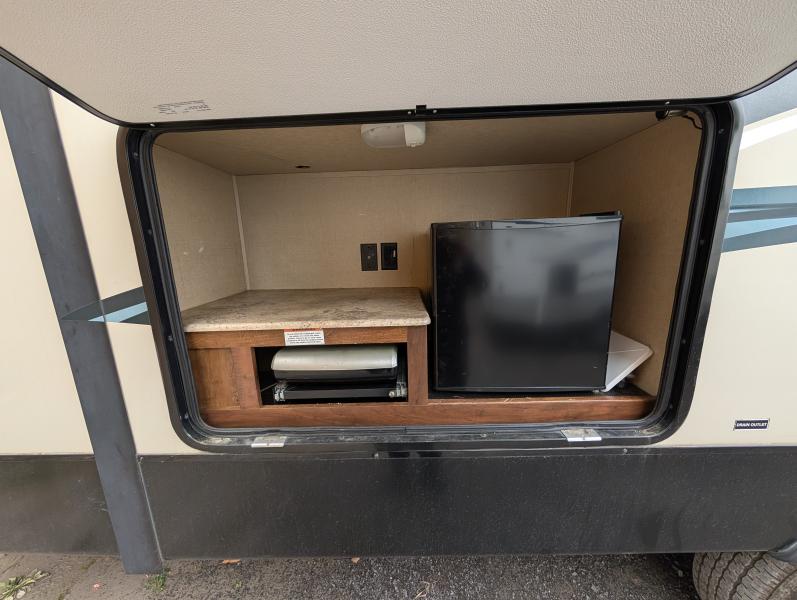 The exterior of the Coachmen Chaparral 29RLS is equally impressive, featuring durable construction and a sleek design. With a weight of approximately 4,500 kilograms, this fifth wheel is easy to tow, making it a versatile option for any adventure. Additional features include an awning for outdoor relaxation, ample storage compartments, and a reliable heating and cooling system to keep you comfortable in any climate. Don't miss the opportunity to own this exceptional RV and embark on your next journey with confidence and ease.
