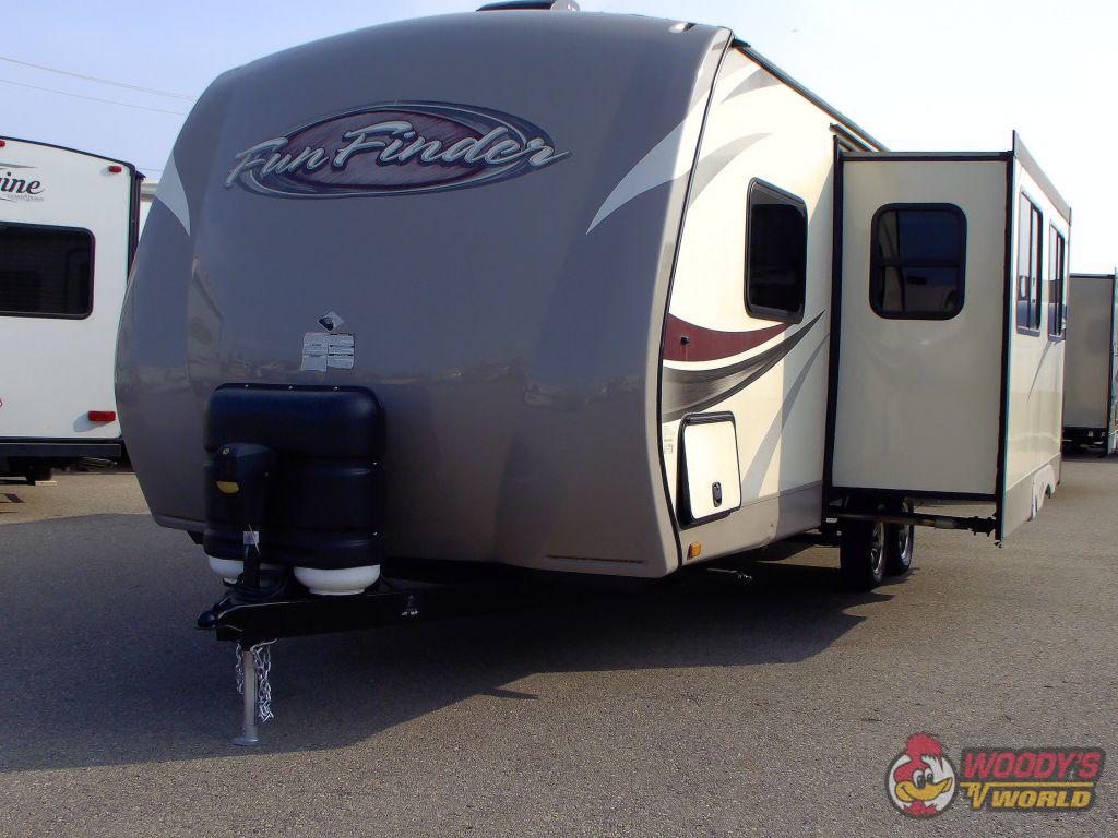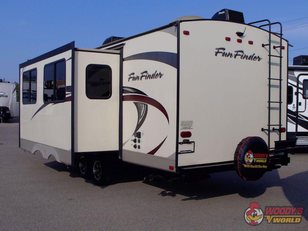The FunFinder 265RBSS also boasts a well-appointed bathroom with a shower, sink, and toilet, ensuring you have all the conveniences of home. With a dry weight of approximately 2,900 kilograms, this travel trailer is easy to tow, and its aerodynamic design enhances fuel efficiency. Additional features include ample storage compartments, an electric awning for outdoor relaxation, and a robust heating and cooling system to keep you comfortable in any weather. Don't miss the opportunity to own this exceptional travel trailer that combines style, functionality, and reliability for your next journey.