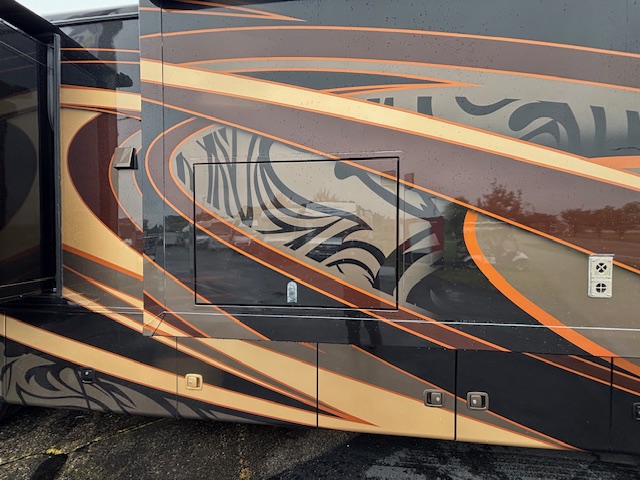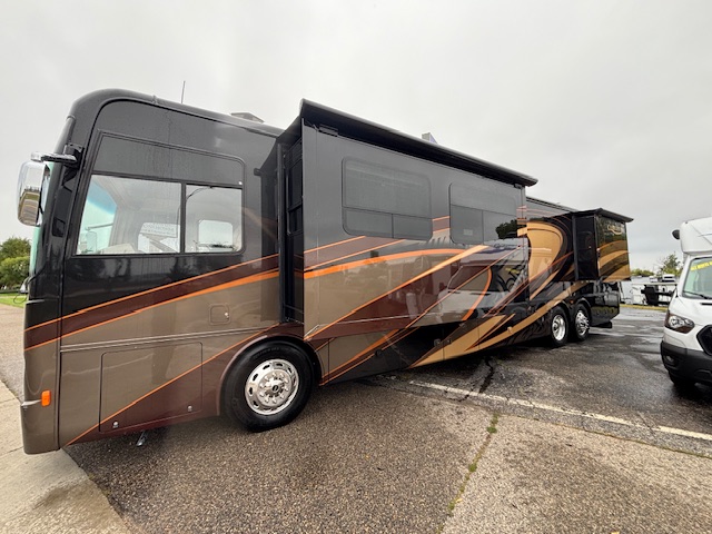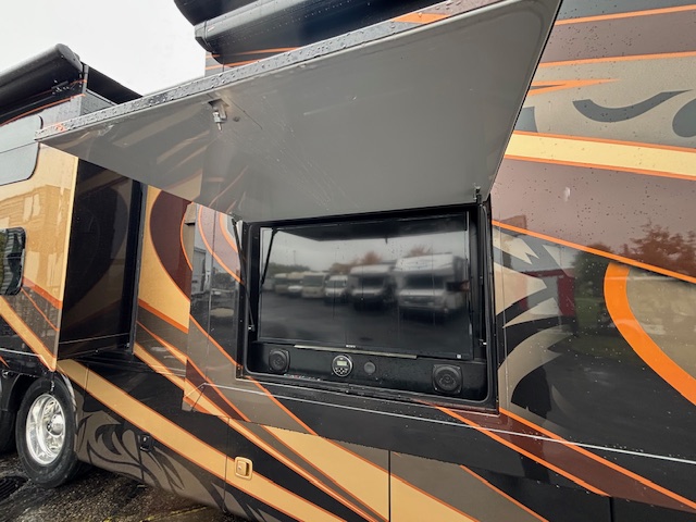 Step inside and be amazed by the four slide-outs that expand the living space, creating a roomy and inviting atmosphere. This RV can comfortably sleep up to 10 people, making it ideal for large families or groups. Whether you're lounging in the cozy living area, preparing meals in the fully-equipped kitchen, or enjoying a good night's sleep in one of the plush sleeping areas, you'll feel right at home. The thoughtful layout ensures everyone has their own space to unwind after a day of adventure.