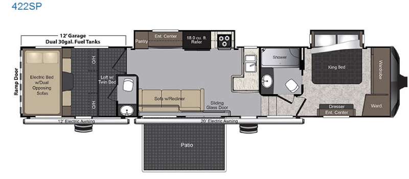 Looking for the perfect adventure companion? Check out this 2016 Keystone RV Raptor 422SP Fifth Wheel! With its sleek design and spacious interior, this RV is ready to take you and your family on unforgettable journeys. Measuring about 35 feet in length, it offers plenty of room to stretch out and relax after a day of exploring. Plus, with a weight of approximately 7,161 kilograms, it's sturdy and reliable for all your travel needs.