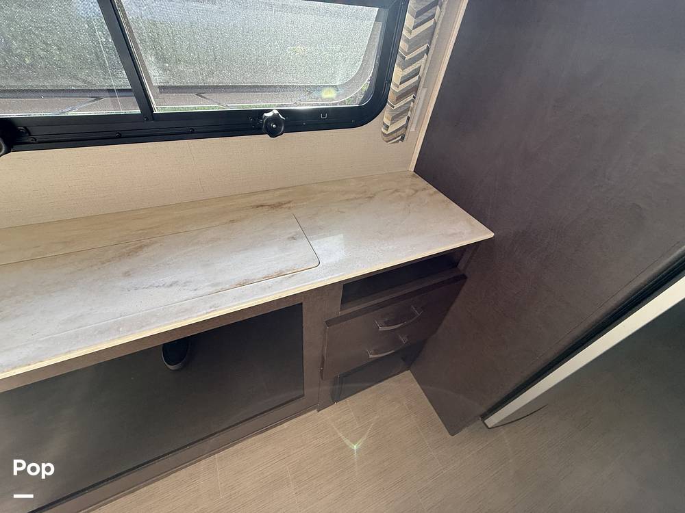 Step inside and be greeted by a thoughtfully designed interior that maximizes space without compromising on comfort. The Unity 24MB features a versatile Murphy bed that easily transforms the living area into a restful sleeping space, ensuring you have all the room you need during the day and a restful night's sleep. The well-equipped kitchenette comes with a refrigerator, microwave, and two-burner stove, making meal preparation a breeze whether you're parked at a campsite or enjoying a scenic roadside stop.