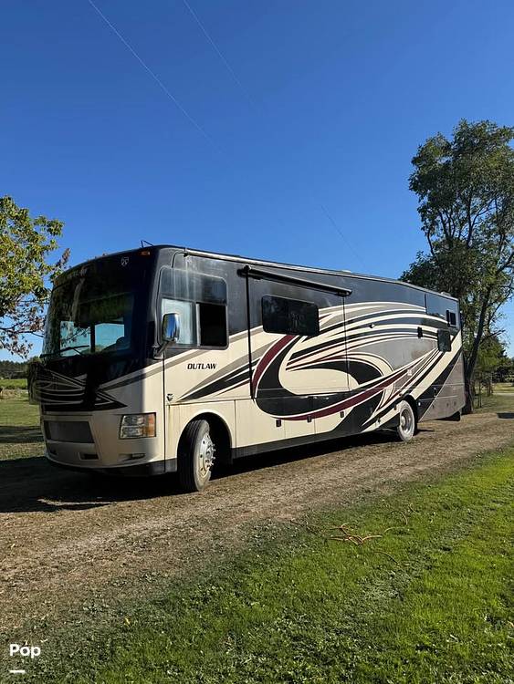 This RV is not just about comfort; it's also about convenience and functionality. With a robust engine and reliable performance, the Thor Motor Coach Outlaw is ready to take you wherever your heart desires. The exterior boasts ample storage compartments for all your gear, and the built-in awning provides a perfect spot for outdoor relaxation. Whether you're exploring national parks or tailgating at your favorite sporting event, this RV is your ticket to unforgettable adventures. Don't miss the opportunity to own this exceptional motorhome and start creating memories that will last a lifetime.