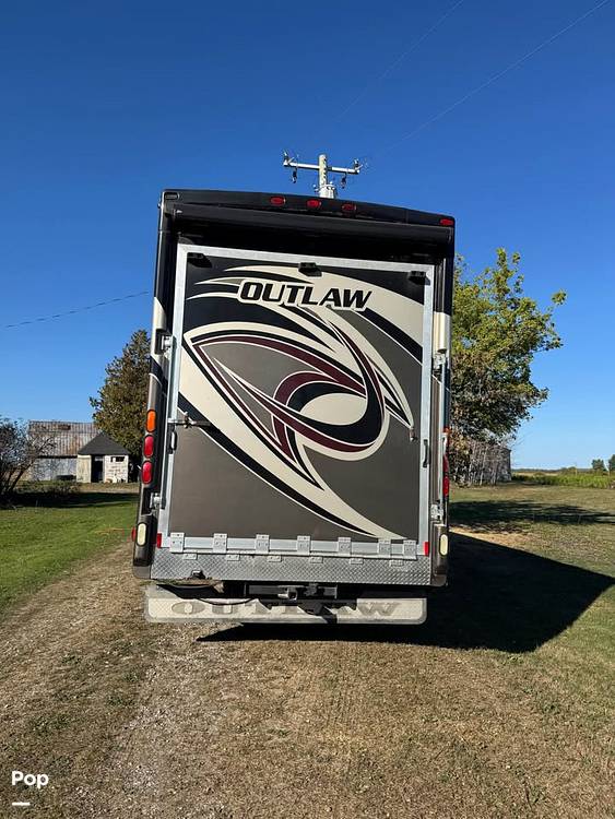 Measuring an impressive 31 feet in length, the Outlaw 37RB is built to provide ample living space while remaining easy to maneuver. Inside, you'll find a well-appointed interior featuring a fully equipped kitchen, complete with modern appliances and plenty of storage. The living area is perfect for entertaining, with comfortable seating and a flat-screen TV for those cozy nights in. The master bedroom offers a private retreat with a plush queen-sized bed, while additional sleeping areas include convertible sofas and bunks, ensuring everyone gets a good night's rest.