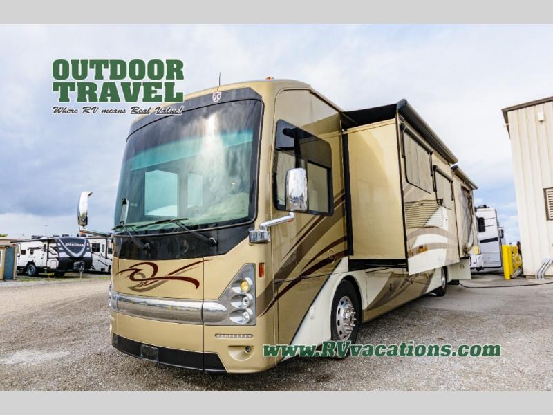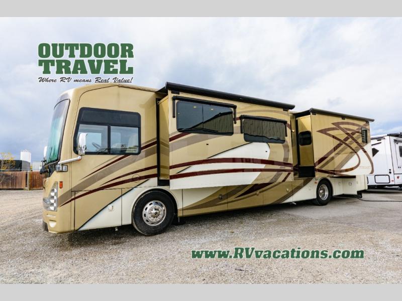 Introducing the 2016 Thor Motor Coach Tuscany 40DX, a premier Class A motorhome designed for those who seek luxury and comfort on the road. This meticulously crafted RV spans an impressive 34 feet in length, offering ample space for both relaxation and adventure. With three strategically designed slide-outs, the Tuscany 40DX maximizes interior space, ensuring a roomy and comfortable living environment for you and your family.