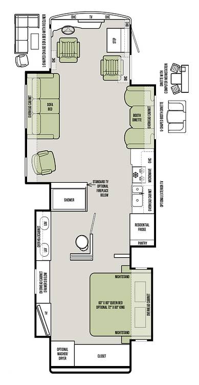 Inside, you'll find ample sleeping accommodations for up to six people, making it perfect for family vacations or road trips with friends. The well-appointed interior features a cozy living area, a fully equipped kitchen, and a comfortable dining space, ensuring you have everything you need for a relaxing getaway. The master bedroom offers a plush queen-sized bed, while the convertible sofa and dinette provide additional sleeping options for your guests.
