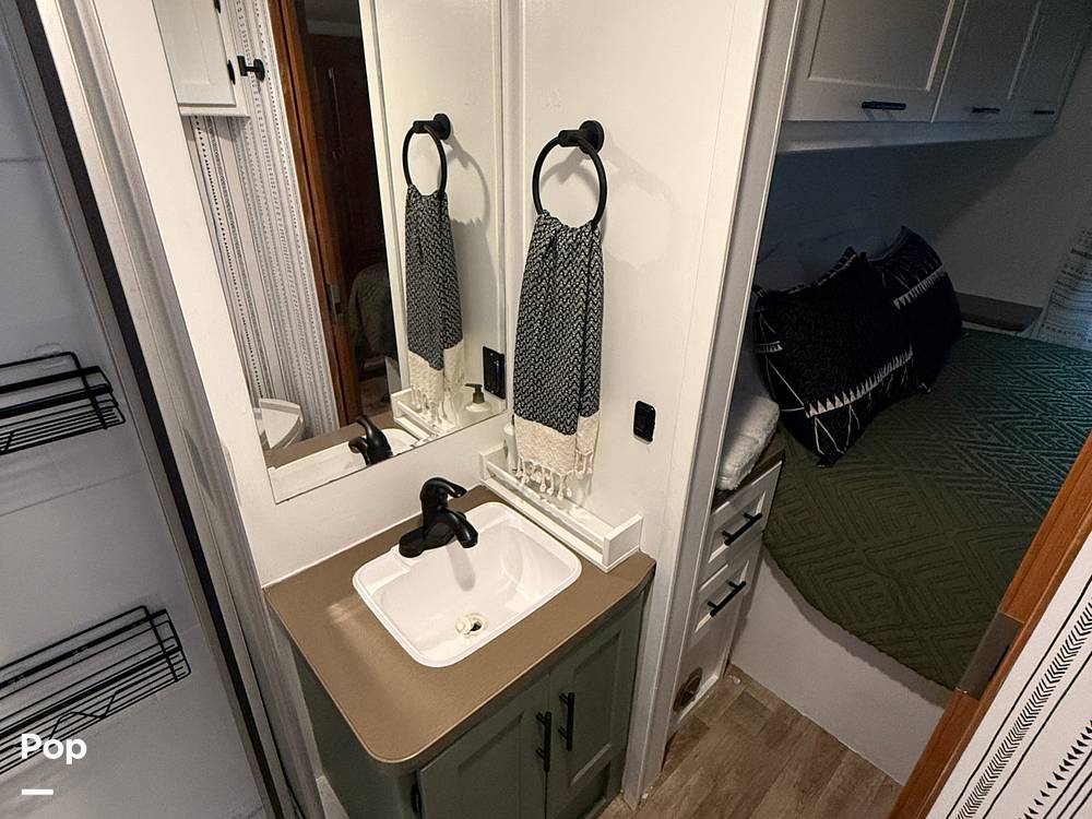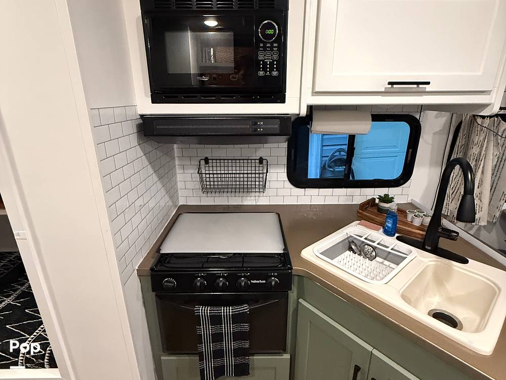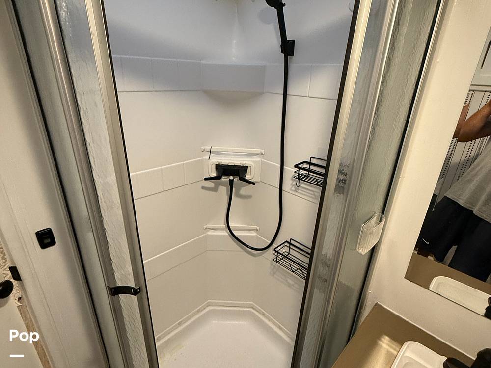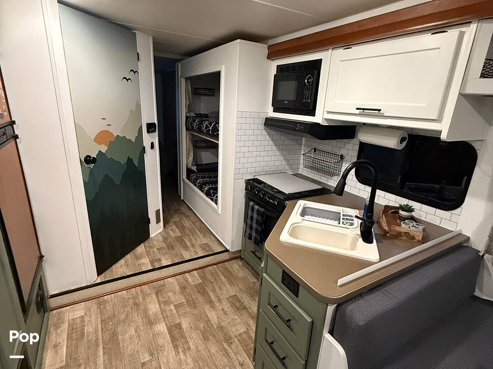 Inside, you’ll find enough room to comfortably sleep up to 8 people, making it perfect for family trips or a getaway with friends. The layout is thoughtfully designed to maximize space and comfort, featuring a queen-sized bed, bunk beds, a convertible dinette, and a sofa bed. The kitchen is fully equipped with a fridge, microwave, and stove, so you can whip up your favorite meals on the go. Plus, the bathroom comes with a shower, ensuring you have all the essentials for a comfortable journey.