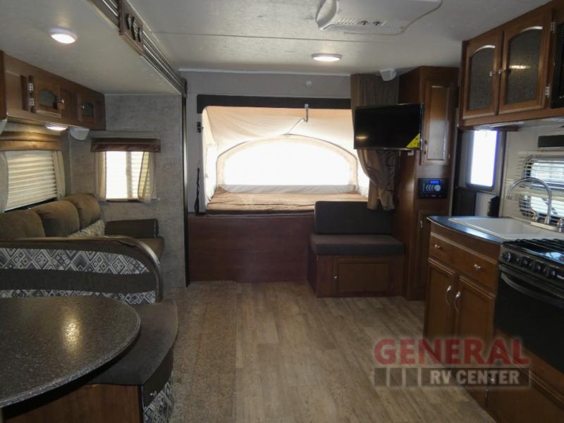 Step inside to find a well-thought-out interior that maximizes space and functionality. The single slide-out expands the living area, providing ample room for relaxation and entertainment. This RV can comfortably sleep up to six people, making it perfect for family vacations or group getaways. The hybrid design features comfortable sleeping arrangements, ensuring everyone has a cozy place to rest after a day of adventure. The interior is equipped with modern amenities and thoughtful touches that make life on the road a breeze.