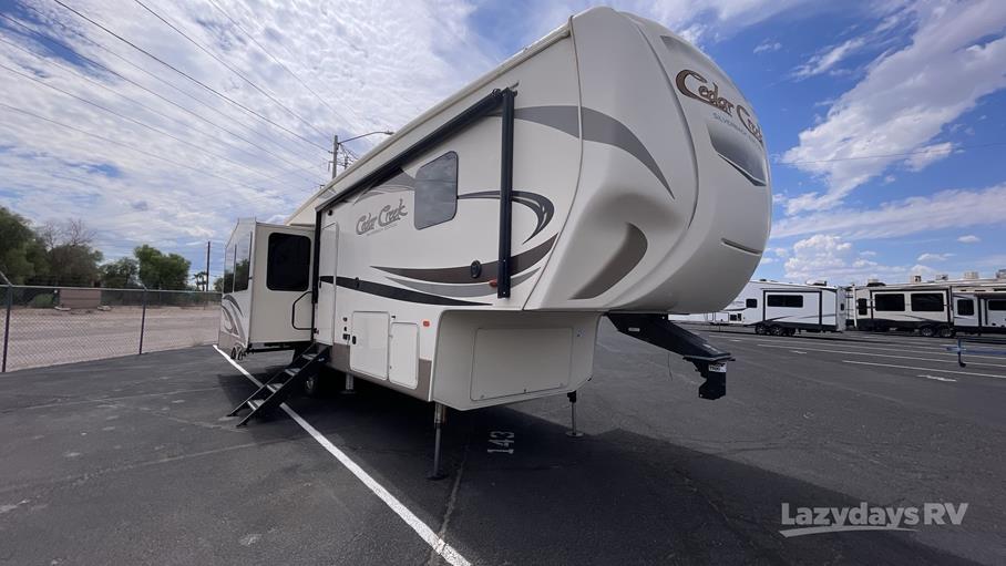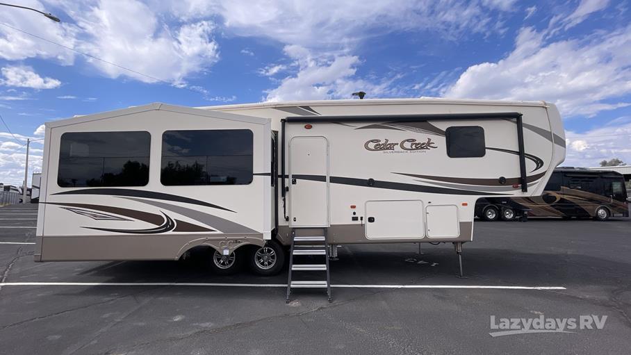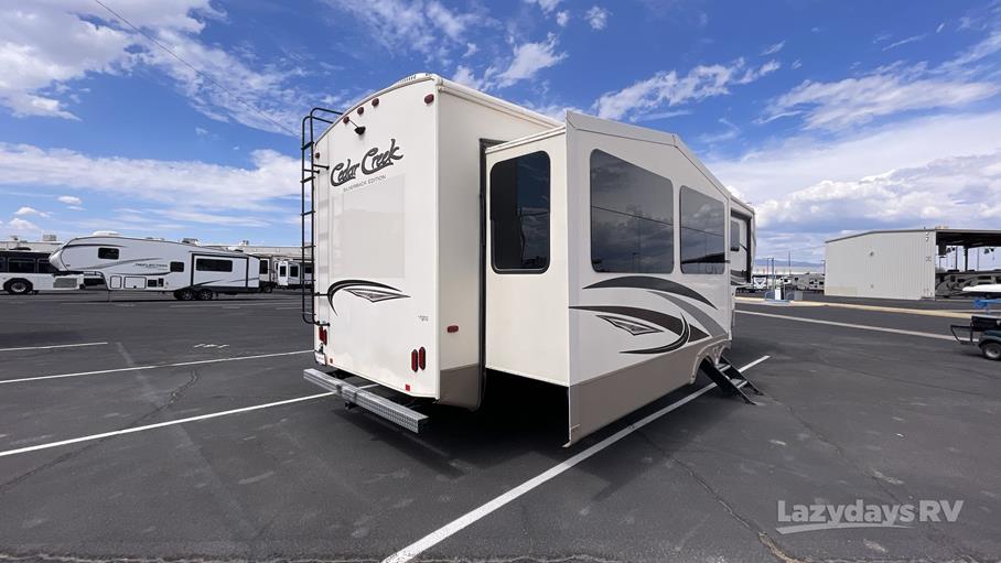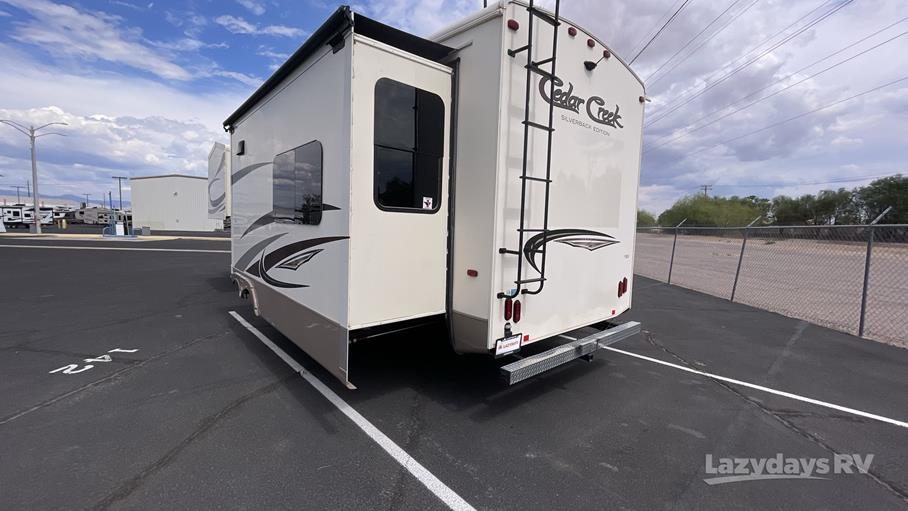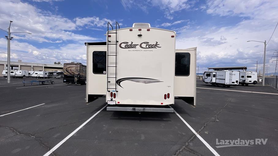 Introducing the 2017 Forest River Cedar Creek Silverback 29RE Fifth Wheel, a luxurious and spacious mobile retreat designed for the discerning traveler. This meticulously crafted RV offers an exceptional blend of comfort, functionality, and style, making it an ideal choice for both short getaways and extended adventures. With a length of 28 feet and a weight of approximately 4,887 kilograms, this fifth wheel is engineered to provide a stable and smooth towing experience.