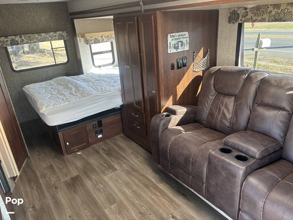 Measuring about 20 feet in length, the Forester 2401R is compact enough to navigate winding roads and snug campsites, yet spacious enough to provide all the comforts of home. Inside, you'll find a well-designed layout featuring a comfy sleeping area, a fully-equipped kitchenette, and a bathroom with all the essentials. The living space is perfect for relaxing after a day of exploring, with plenty of room to stretch out and unwind.