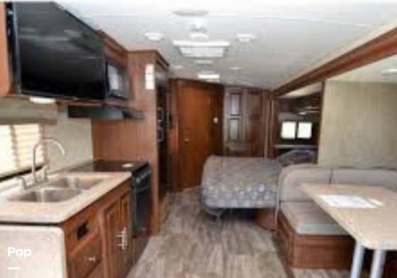 Step inside to find a thoughtfully designed layout that maximizes every inch of space. The RV features a cozy sleeping arrangement, including a queen-sized bed, a convertible dinette, and a pull-out sofa, ensuring everyone has a comfortable place to rest. The kitchen is equipped with modern appliances, including a refrigerator, microwave, and stove, allowing you to prepare meals with ease. The bathroom offers all the essentials, including a shower, sink, and toilet, providing the comforts of home on the road.