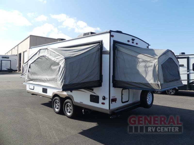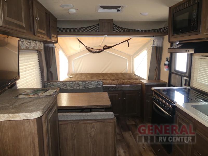 The Flagstaff Shamrock 183 Hybrid is engineered to accommodate up to seven people comfortably, making it perfect for family trips or group excursions. Inside, you'll find a thoughtfully designed layout that maximizes space and functionality. The sleeping arrangements include expandable tent beds, a convertible dinette, and a sofa, ensuring everyone has a cozy place to rest after a day of exploration. The interior is equipped with essential amenities, including a fully functional kitchen with a refrigerator, stove, and microwave, as well as a bathroom with a shower, providing all the comforts of home on the road.
