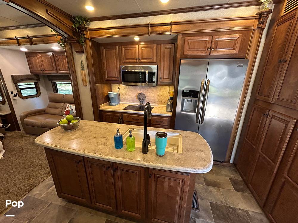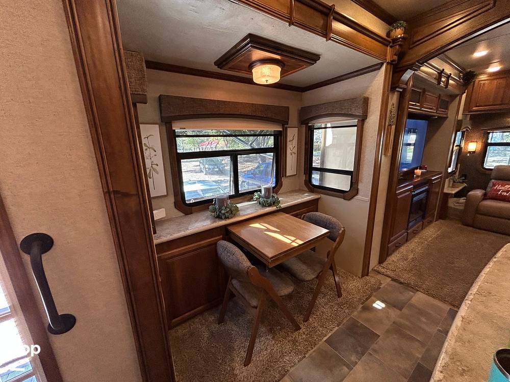 Introducing the 2017 Heartland Landmark 365 Series Charleston Fifth Wheel, a luxurious and spacious RV designed for those who seek comfort and elegance on the road. This meticulously crafted fifth wheel offers a perfect blend of style and functionality, making it an ideal choice for both short getaways and extended adventures. With a length of 34 feet, this RV provides ample space for relaxation and entertainment, ensuring that every journey is as enjoyable as the destination.